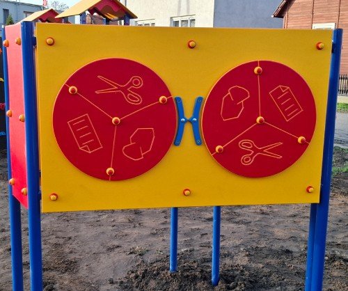Zestaw 3 szt. paneli zawieszony na konstrukcji metalowej, idealne rozwiązanie do obudowania przeszkody na placu zabaw.